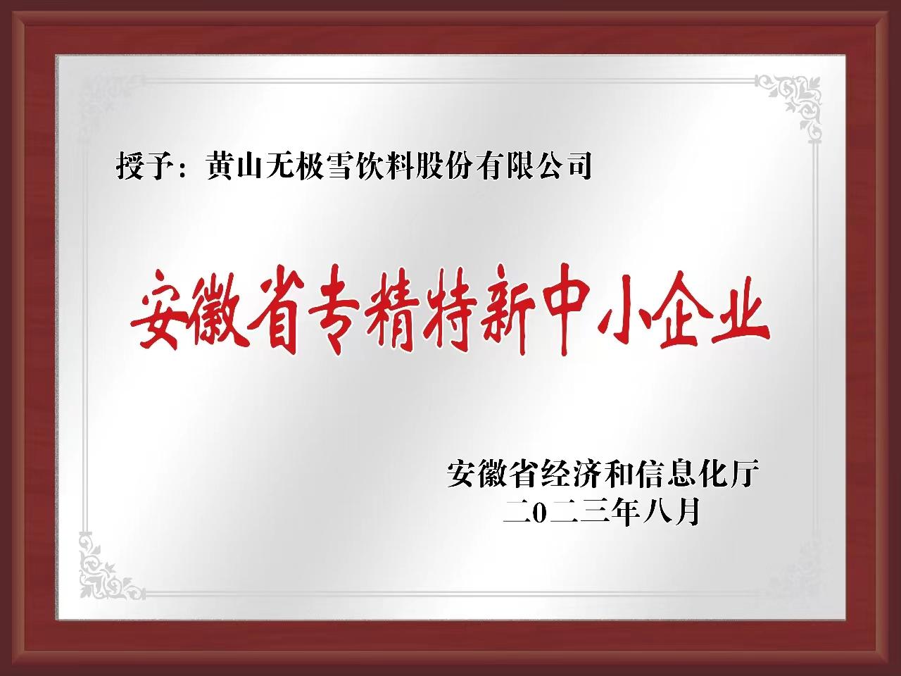 喜訊!黃山無(wú)極雪榮獲2023年度安徽省“專精特新”中小企業(yè)稱號(hào)